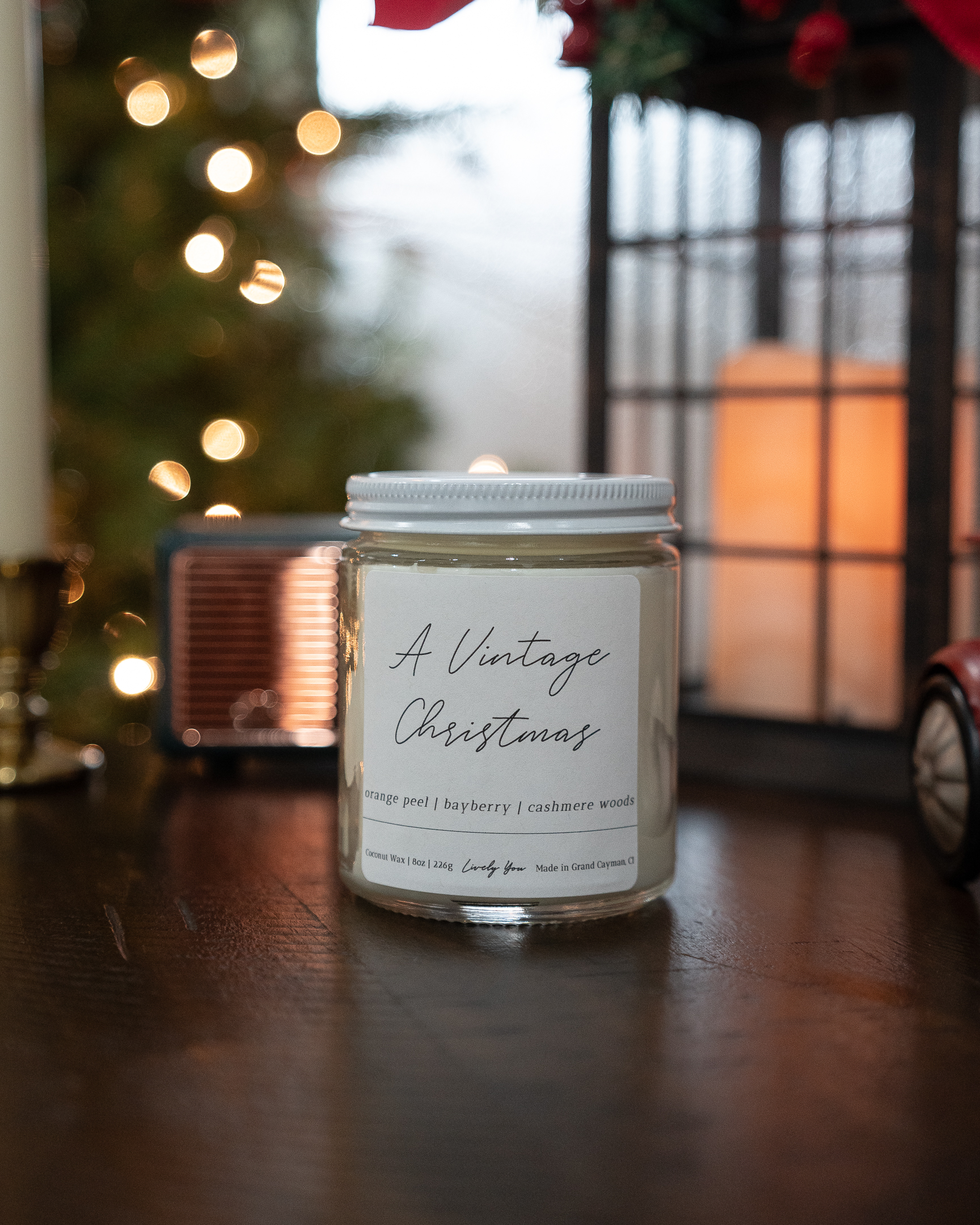 Step back in time with A Vintage Christmas: a warm, nostalgic fragrance that captures the charm of an old-fashioned holiday gathering. Sparkling red apples and orange peel mingle with sugared jasmine and a hint of pink peppercorn, while heart notes of bayberry, moss berry, and creamy tonka bean fill the air with cozy cheer. The scent settles into a comforting base of cinnamon spice, cashmere woods, and soft white amber – timeless, elegant, and wrapped in the warmth of holiday memories.